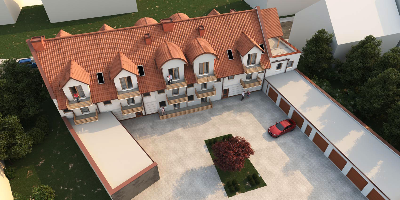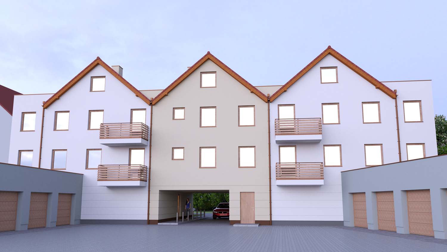 W inwestycji pojawią się garaże wielostanowiskowe z bramami z napędem elektrycznym sterowane pilotem oraz garaże indywidualne..